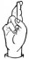 На ћирилици написано ХРАНИМИР ТОДОСИЈЕВИЋ састоји се из 19 слова [?]. Исписано ћириличном једноручном азбуком за глувонеме: